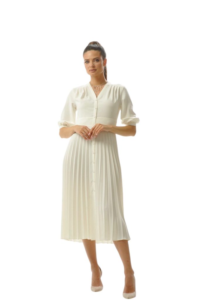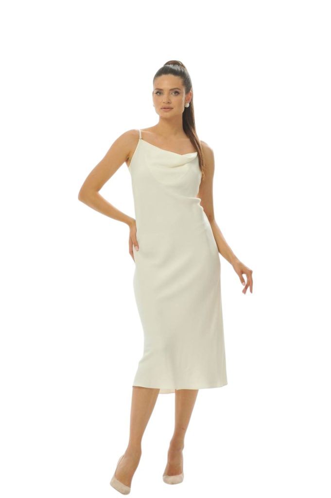 Сукня-міді в ніжному пудровому відтінку 4,000грн. Плісинова сукня довжини міді в глибокому смарагдовому кольорі 4,300грн. Класична блуза вільного крою з бавовни 2,300грн. Елегантна сукня міді з плісиновою спідницею 4,300грн. Шовковистий молочний топ з чорним мереживом 1,300грн. Базовий атласний топ на тонких бретельках 1,200грн. Елегантна атласна сукня в білому кольорі 3,900грн. Приталений жакет із поясом у світло-жовтому відтінку 3,900грн.